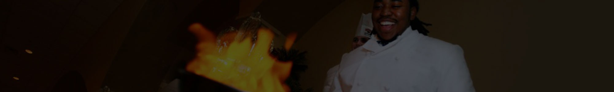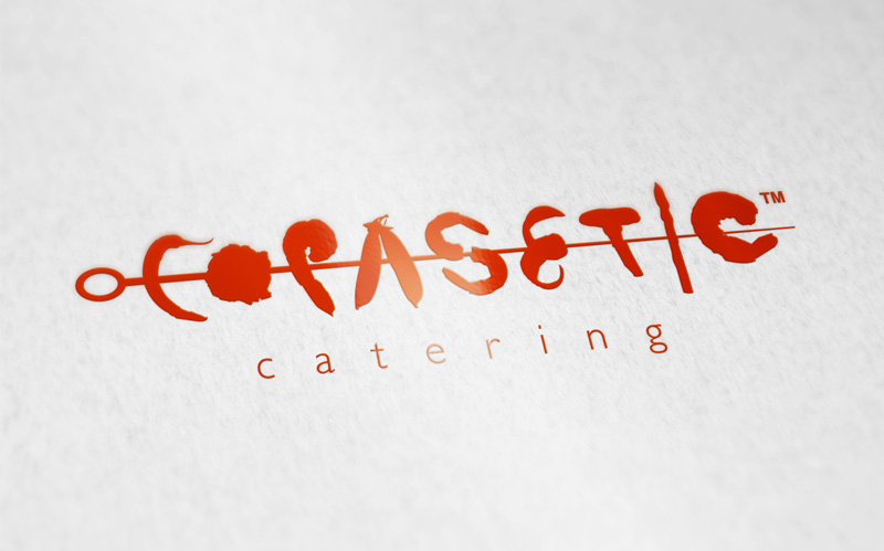 The logo forms a shish kebab through various ingredients as diverse as the chef himself.